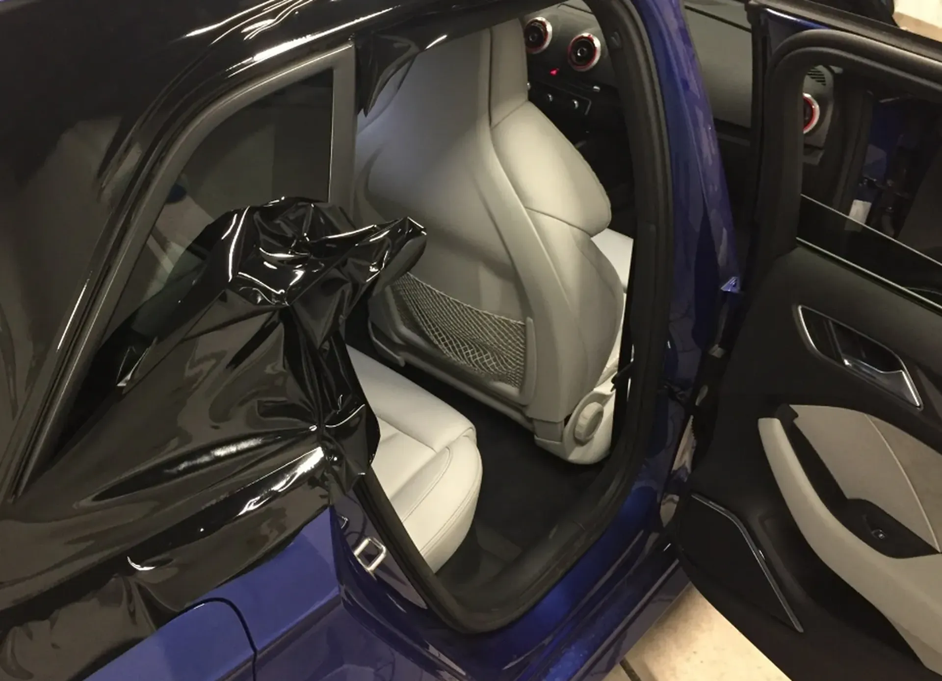 Sur cette Audi rs3, nous avons pratiqué le concept du déchromage intégral. Cela consiste à recouvrir toutes les parties chrome de la voiture avec un adhésif covering en noir brillant de chez AVERY.