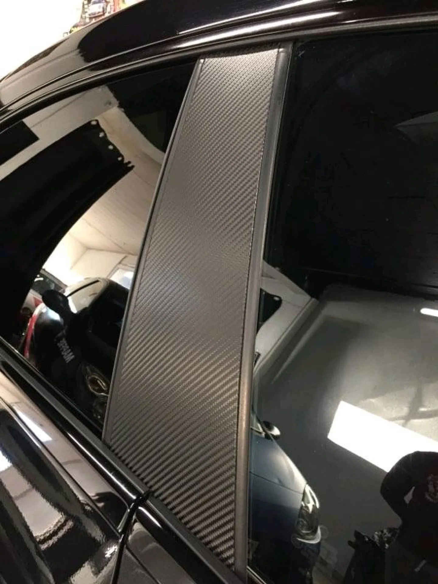 Nous avons effectué la pose de covering sur les becquets (lames de coffres), sur le montant des portes ainsi que sur les rétroviseurs.