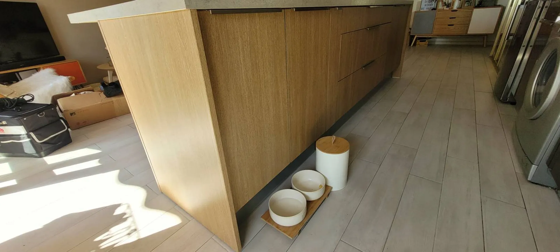 Coverstyl' est un procédé révolutionnaire. Fini le laqué !! Cette cuisine à fait peau neuve grâce à un revêtement en bois naturel.