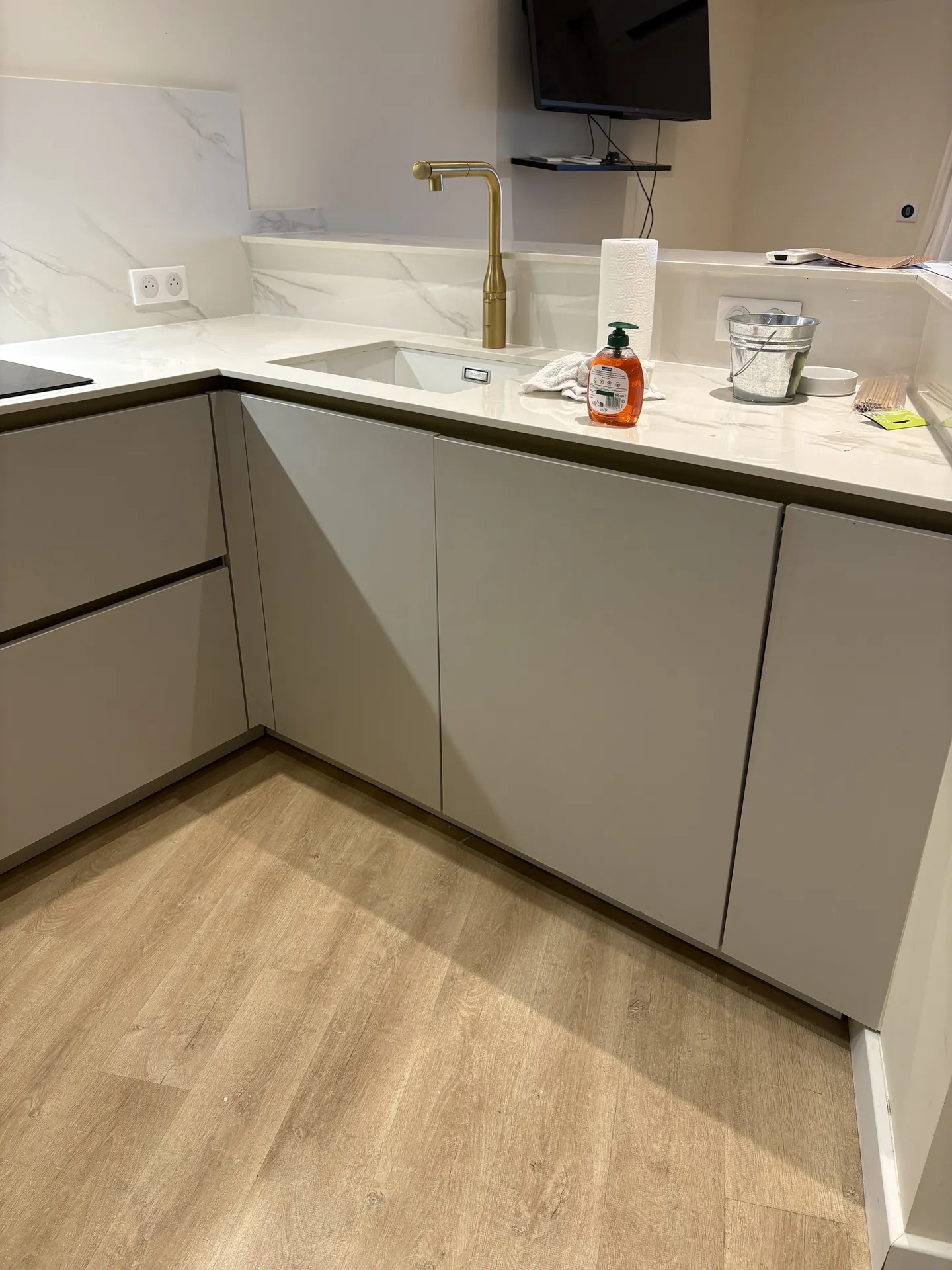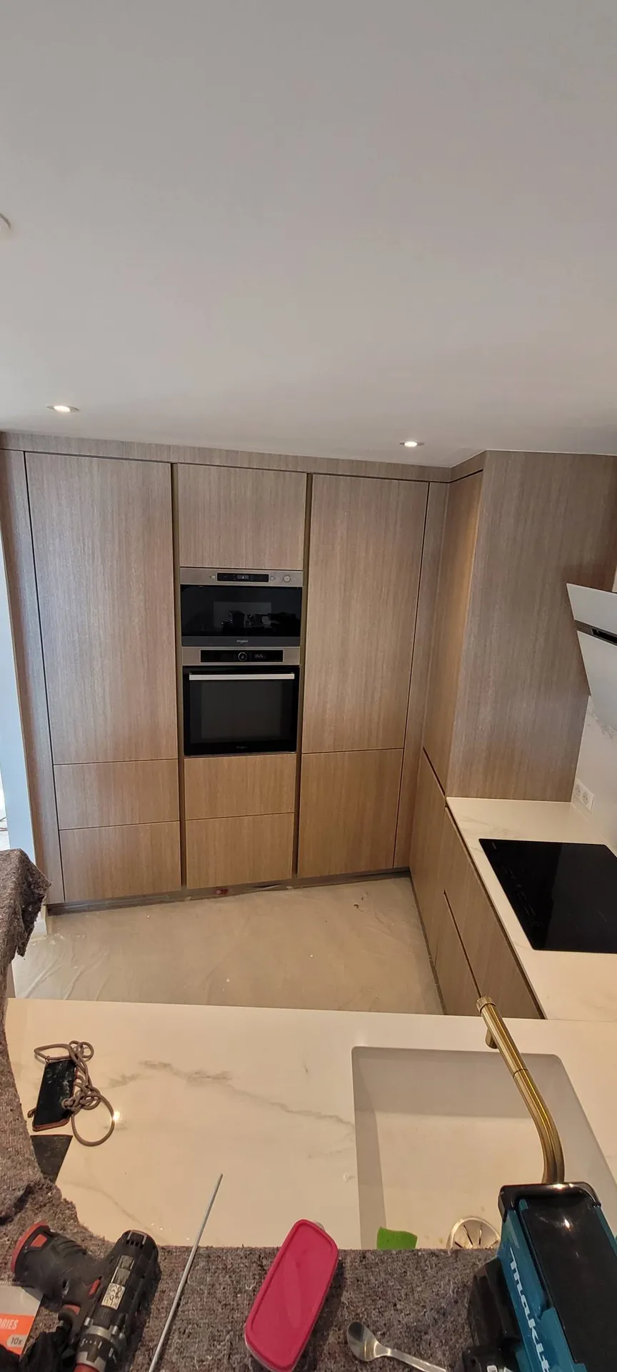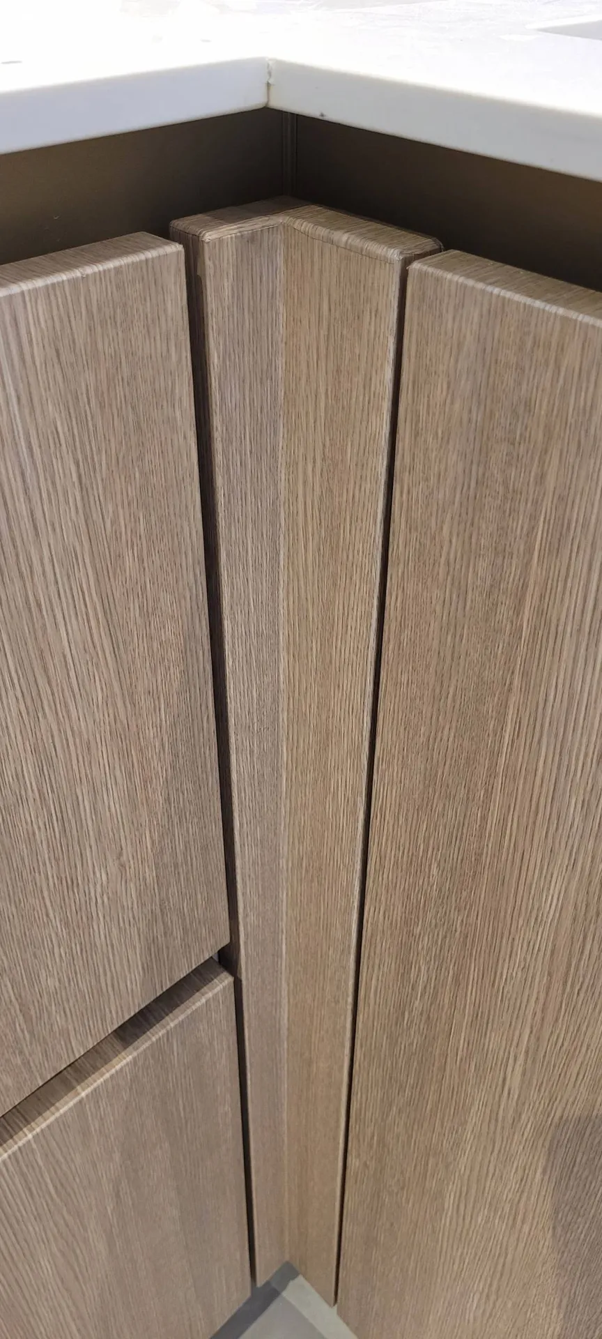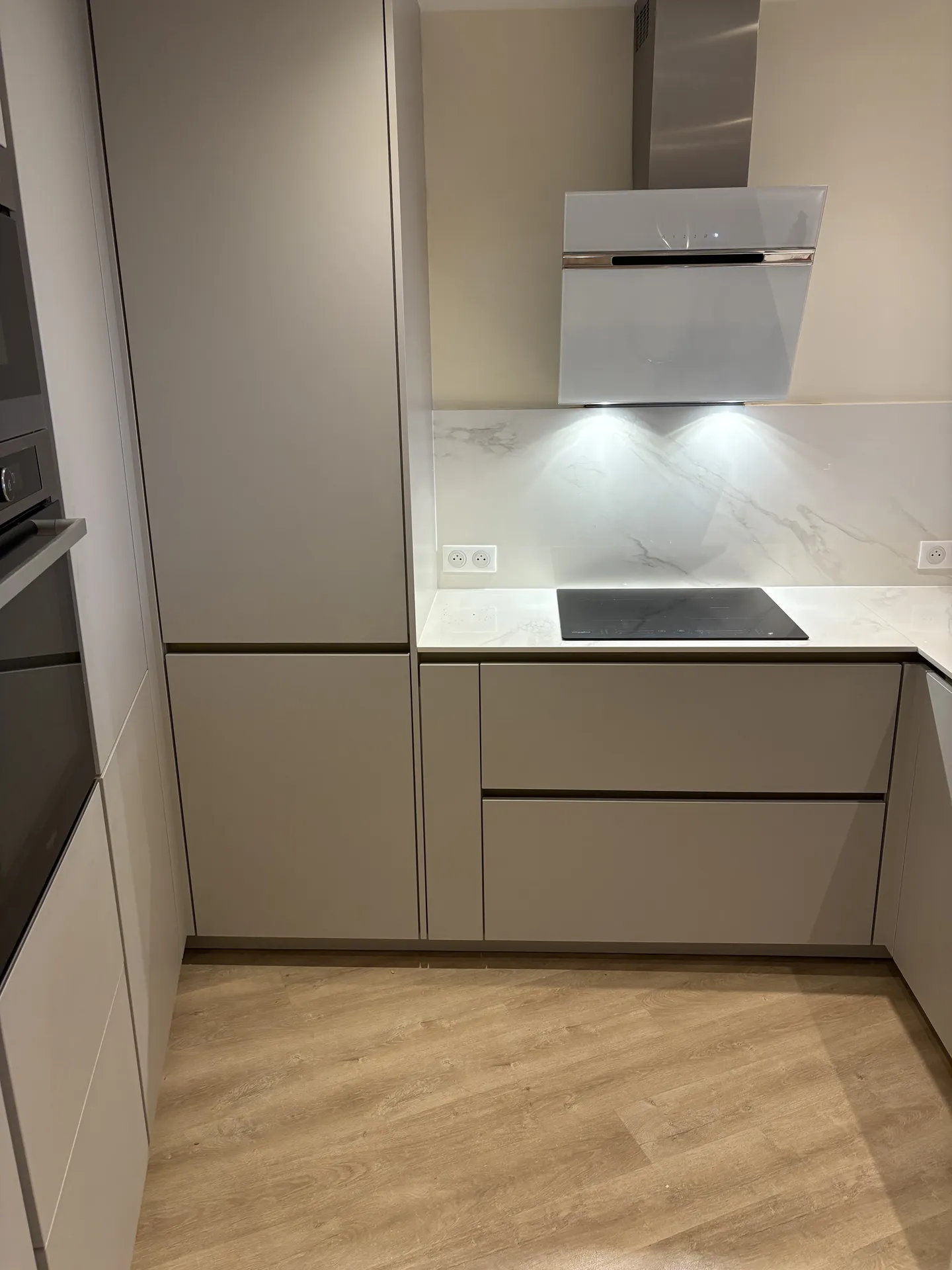 Coverstyl' est un procédé révolutionnaire. Fini le laqué !! Cette cuisine à fait peau neuve grâce à un revêtement en bois naturel structuré.